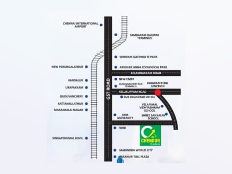 Thirumal Housing and Properties presents a land named Chendur Enclave. It is found in the area of Guduvanchery. In Chennai, getting land is most prestigious. View the place as it is gracious with the greenery landscape. The most comfortable and luxurious life is ahead here. The units are 53. The area has many colleges, schools, markets and many shops. You can start your new life here with us. The area is surrounded by the water lakes and the temples to make your evening a pleasant one. Find this residential land and conquer the immense pleasure.