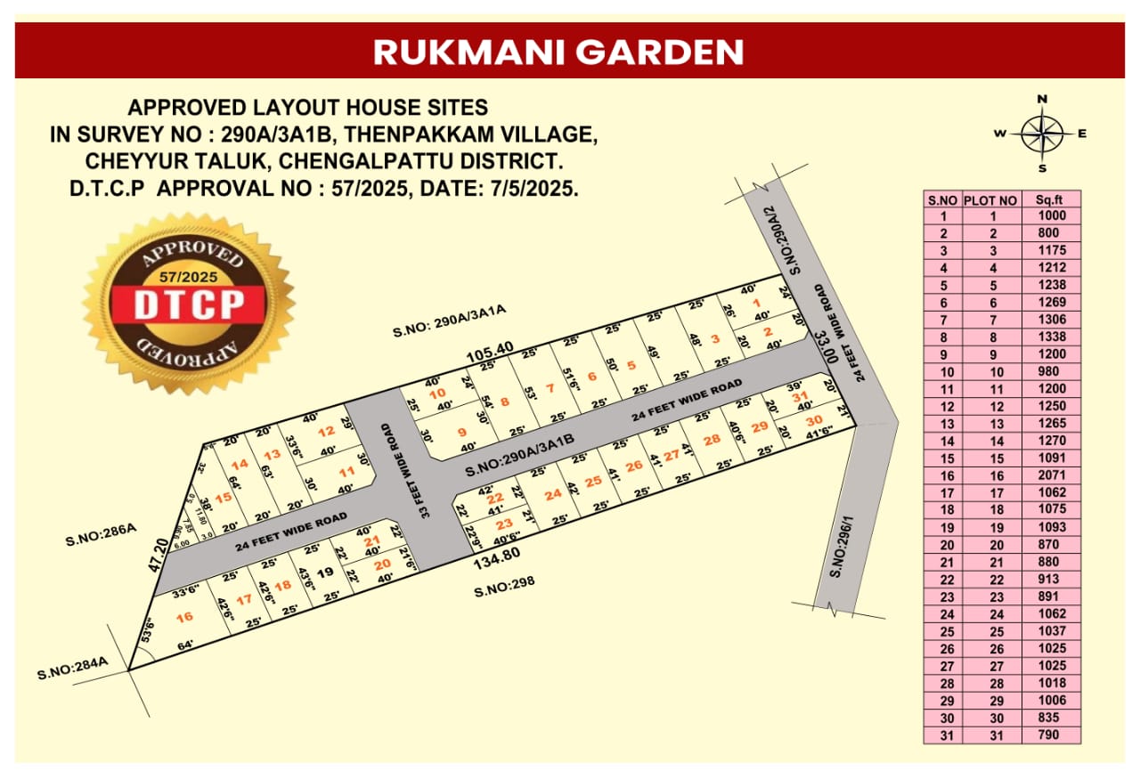 Thangam housing and properties presents Plots for sale at RUKMANI GARDEN, THENPAKKAM