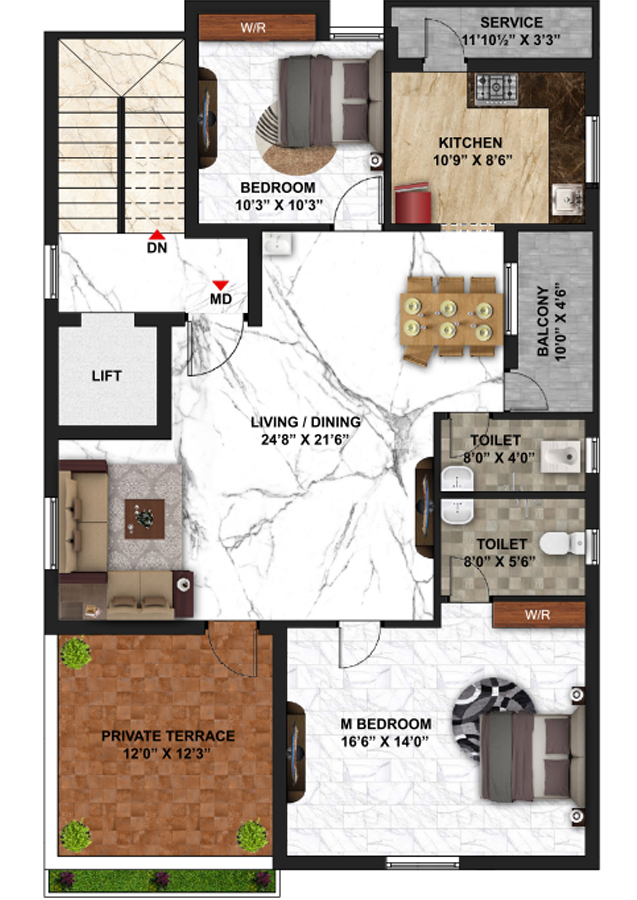 Located in one of the most desired residential heaven KST Sai Aishwaryam is indeed a modern property set out to steal all our hearts! Designed and executed by the KST Promoters this is indeed a nice residential apartment complex comprising 1 apartment per floor in Tambaram East. A total of 3 apartments can be found in this stilt plus 3 floored blocks. Each unit has its very own sun deck where one can enjoy beautiful sunrises and sunsets. In this property, there are 2 & 3 BHK apartments with a unit area of 1300 – 1555 Sq.Ft. So they are spaced luxuriously and built with 100% Vaastu.