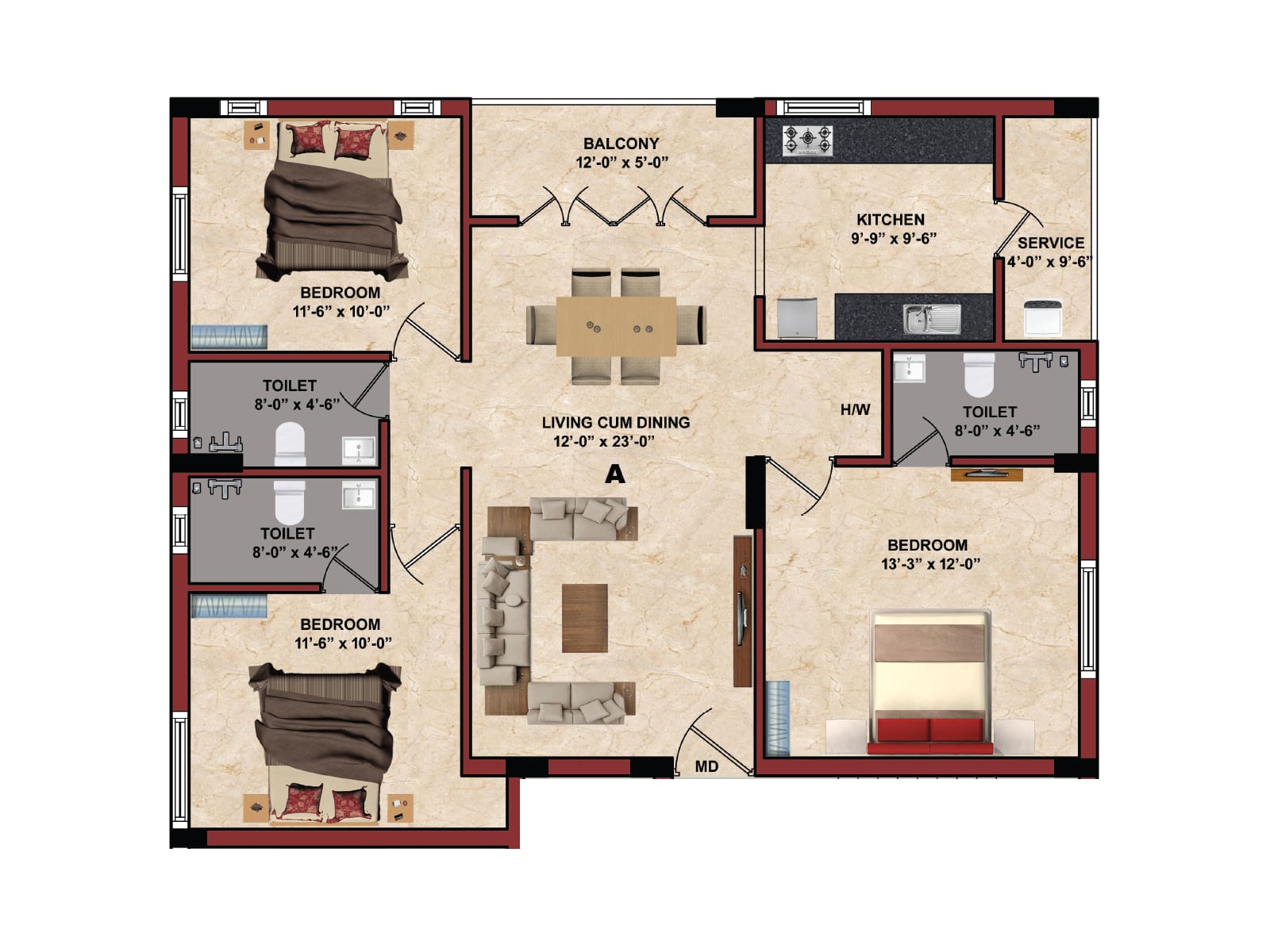 | Type | Sq.ft | Price |