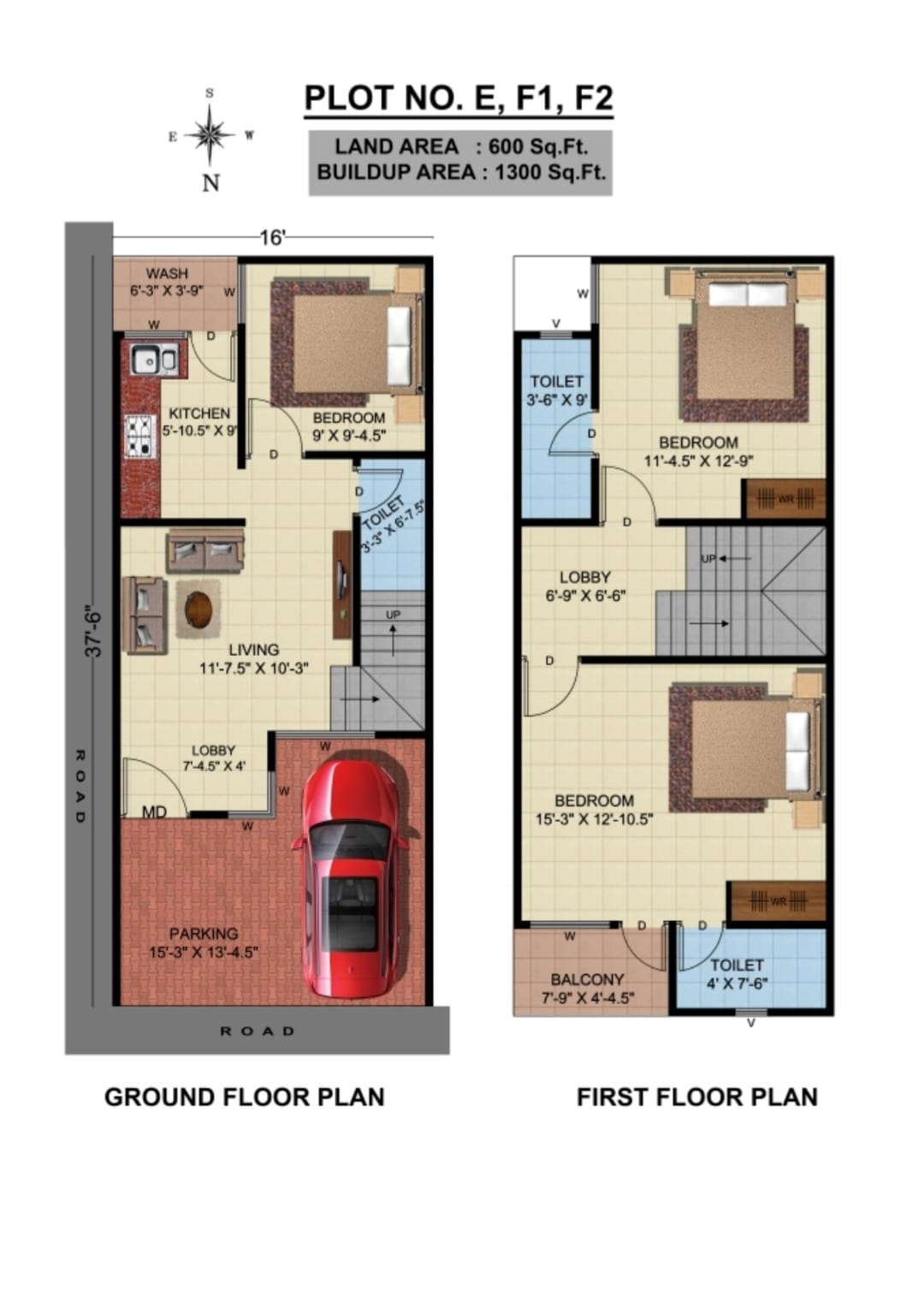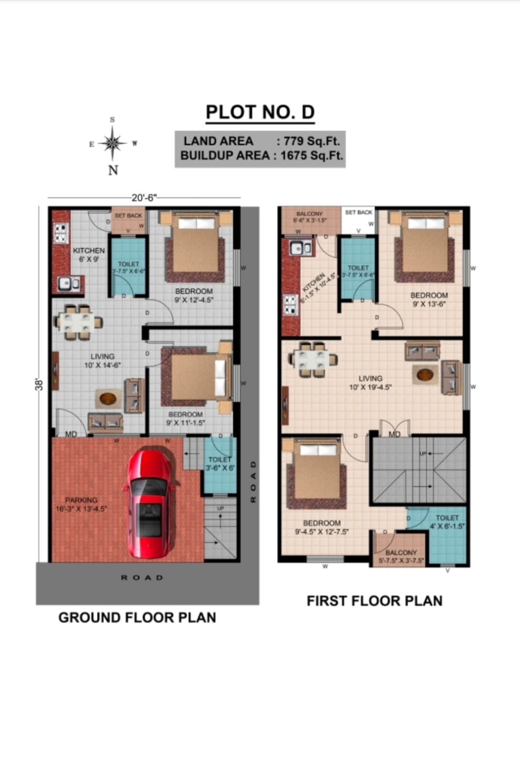 - Land area 780 sqft buildup 1700 sqft G+1 ground floor 2 bhk & first floor 2 bhk (1.30)