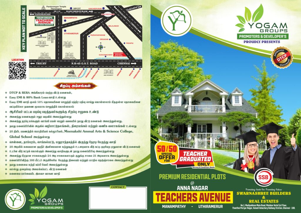 Chengalpattu is the most trending locality for those seeking to live in a calm and tranquil neighborhood. This is exactly where you will find Yogam Teachers Avenue which offers plots in Chengalpet. Developed by Yogam Properties this is one fine project that can be sought after for investment purposes as it has got a wonderful scope of development. Each plot is perfectly planned proportionately so that you can build opulent structures. The unit size of these plots ranges from 600 – 1000 Sq.Ft, perfect to build a residential or commercial block.